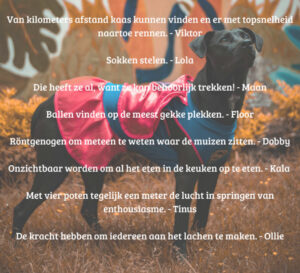Dat werd al duidelijk bij de namen: Van Aika tot Frutsel en van Cooper tot Vik: stuk voor stuk honden die we regelmatig met plezier op het trainingsveld zien verschijnen. Herken jij jouw hond in het overzicht?